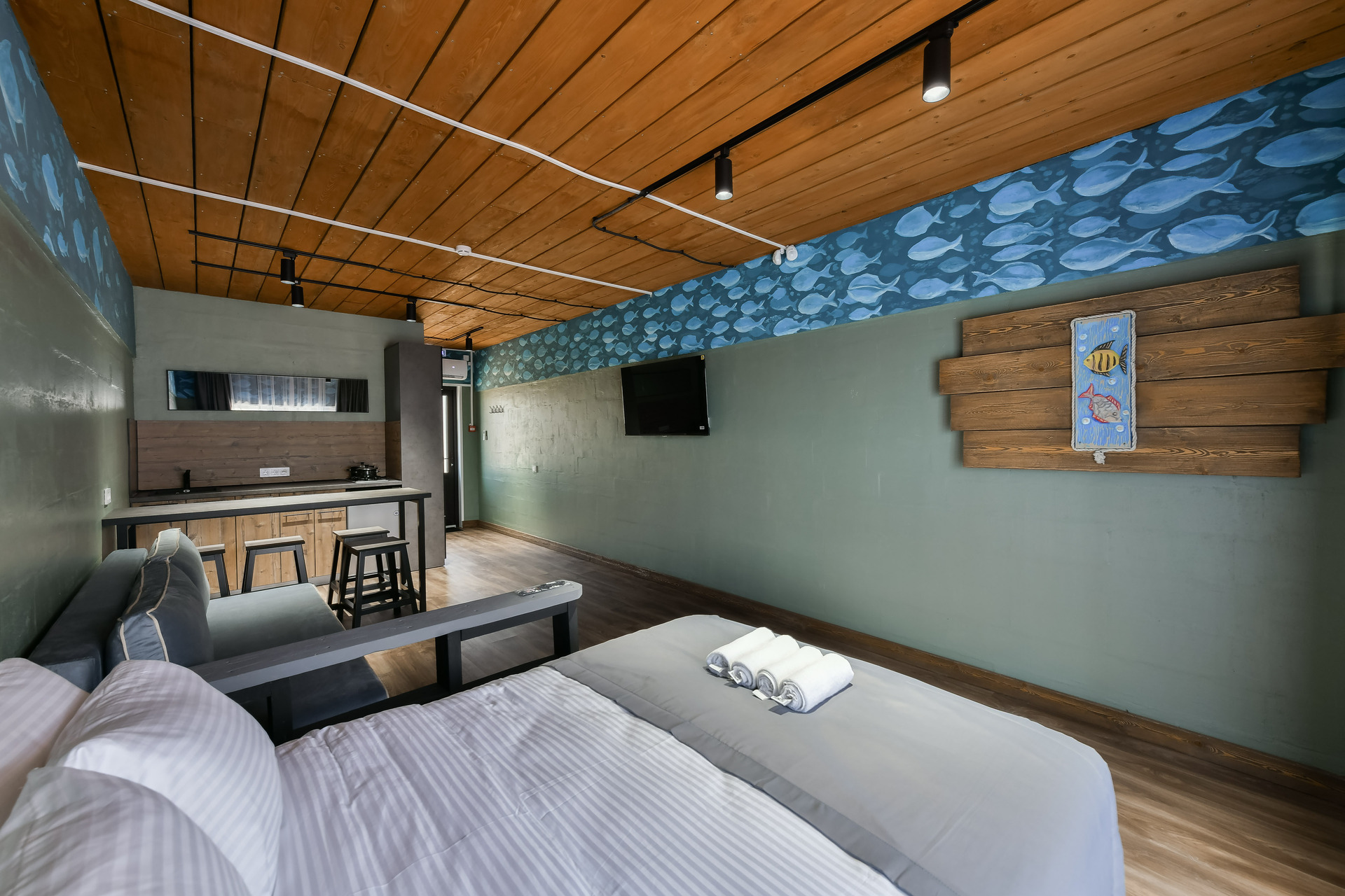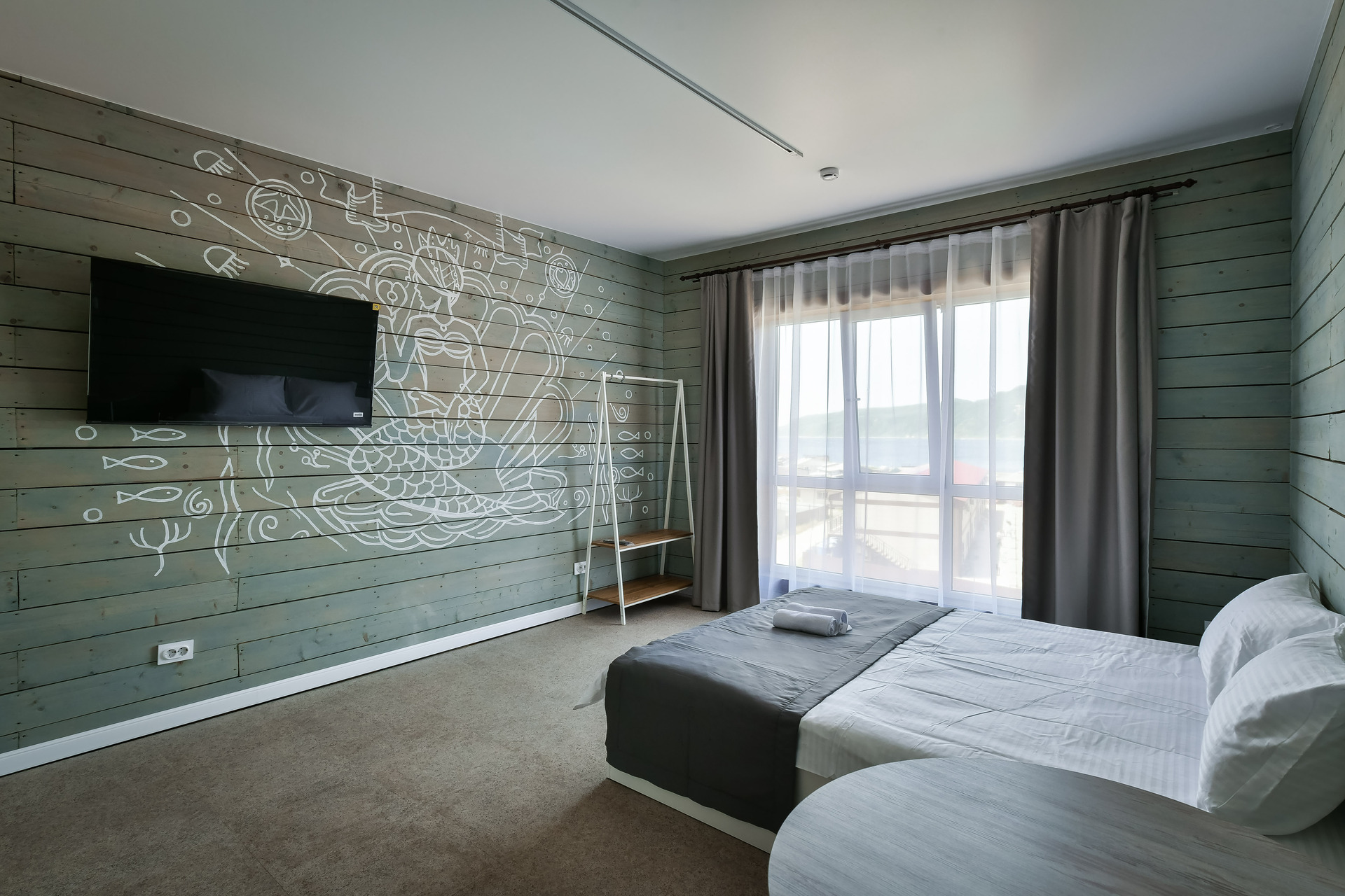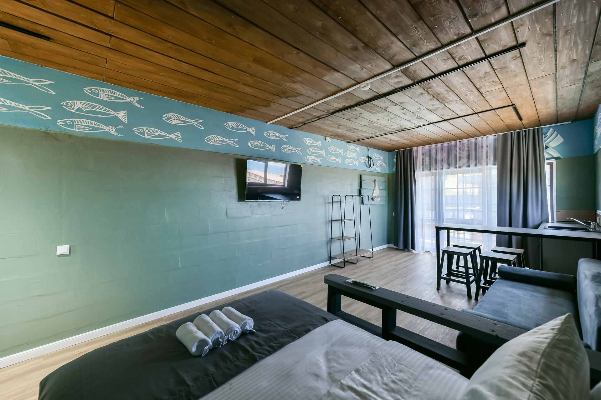 Номер-студио с видом на море. Двуспальная кровать, раскладной диван.