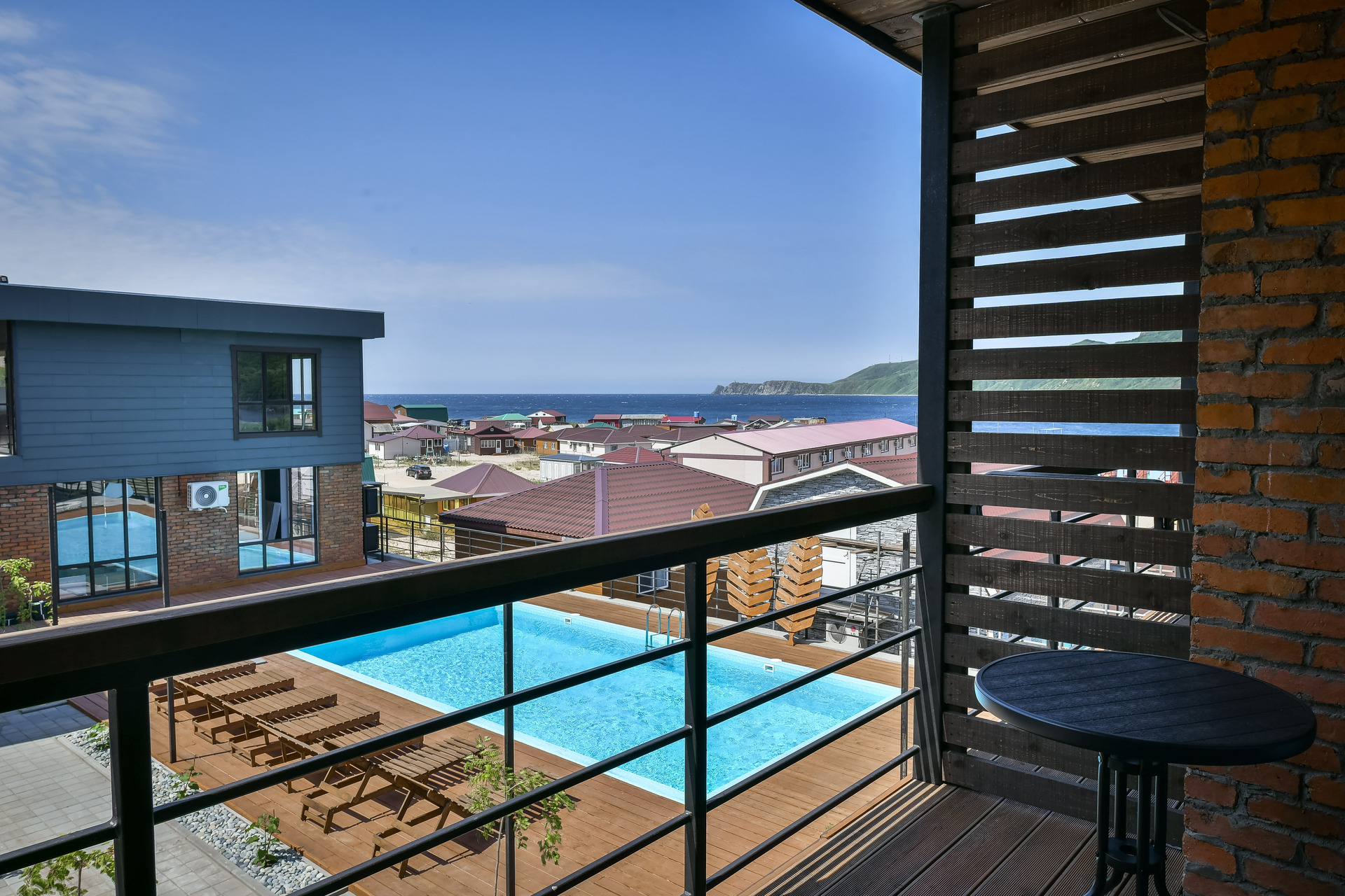 Номер-студио на втором этаже с видом на море. Двуспальная кровать.